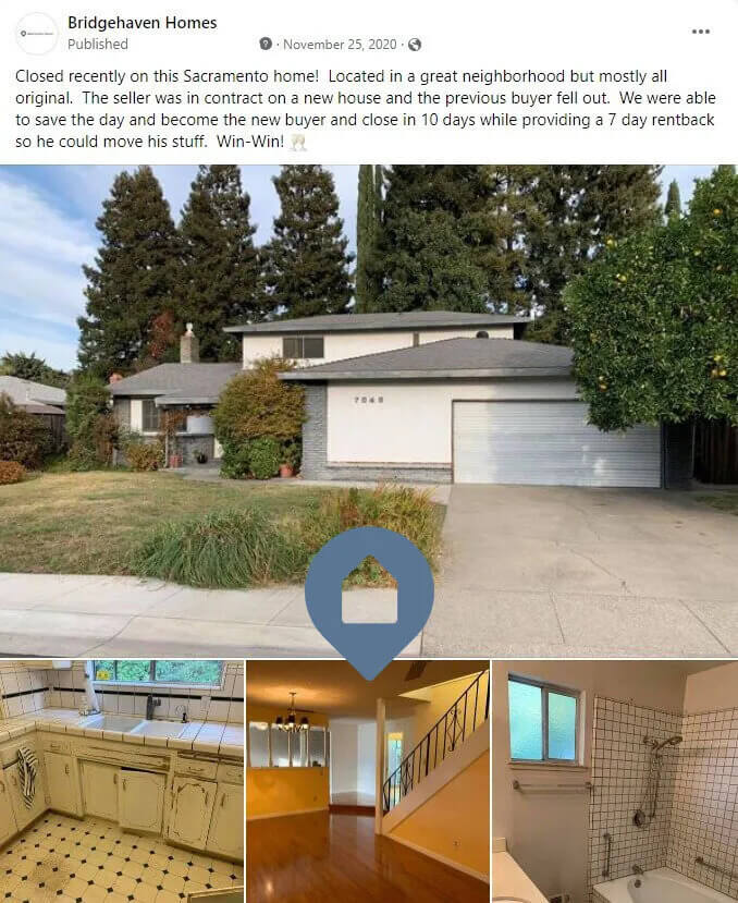 Bridgehaven Homes specializes in outdated houses that need some life brought back into them. We have seen it all! Some houses just need a fresh coat of paint and some houses are 1960s originals! No matter the size or scope, Bridgehaven Homes is the local expert in dealing with houses that need some love and attention. We serve 6 counties in Northern CA including all of Sacramento, Placer (from Roseville / Rocklin / Loomis & all the way up 80), El Dorado, Yolo, Sutter & San Joaquin. No matter your situation, Bridgehaven Homes is here for you!